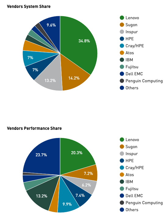 Since June 2019 only Petaflop systems have been able to make the list. The total aggregate performance of all 500 system has now risen to 1.65 Exaflops.